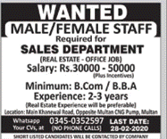 Jobs in Private Real Estate Company Male and Female Staff Required