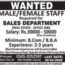 Jobs in Private Real Estate Company Male and Female Staff Required