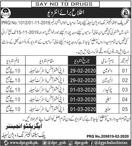 Jobs in Public Health Engineering Division Las Bala Positions Vacant