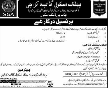Public School Gadap Karachi Principal M.Ed required age limits 65 exprience 5 year in college and 10 year in school