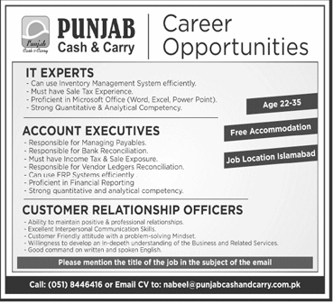Jobs in Punjab Cash and Carry Career Opportunity