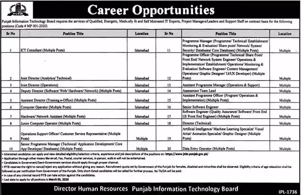Jobs in Punjab Information Technology Board Career Opportunity