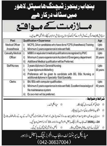 Jobs in Punjab Rangers Teaching Hospital Lahore Career Opportunity