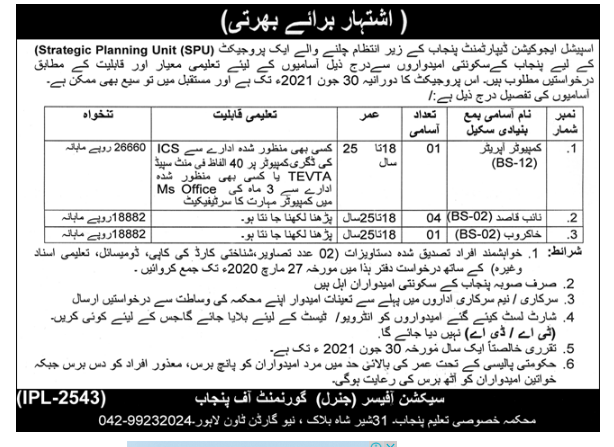 Jobs in Punjab Special Education Department Positions Vacant
