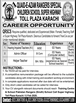 Quaid-e-Azam Ranger Special School Career Opportunity