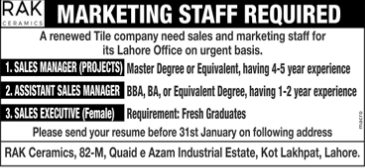 RAK Ceramics staff marketing required in Lahore Male and Female