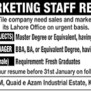 RAK Ceramics Marketing staff required in Lahore