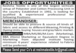 Jobs in Reshma Textile Company Pvt Ltd Staff Required