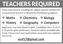 Jobs in Roots International School Teachers Required