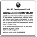 Job in SAARC Development Fund Vacancy Accouterments for CEO