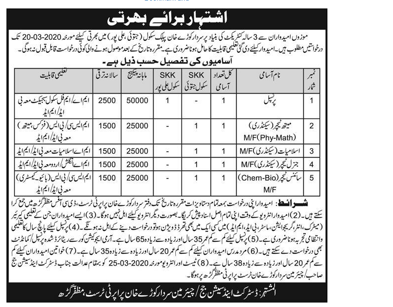 Job in Sardar Kora Khan Public School Staff Required