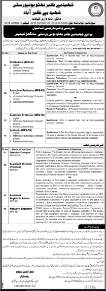 Jobs in Shaheed Benazir Bhutto University Positions Vacant