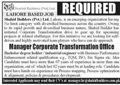 Job in Shahid Builders Pvt Ltd Manager Required