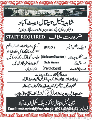 Jobs in Shahina Jamil Teaching Hospital Staff Required