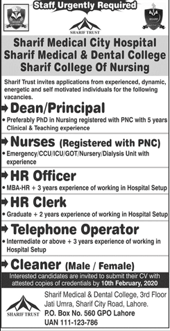 Sharif Medical and Dental College Urgently Staff Required
