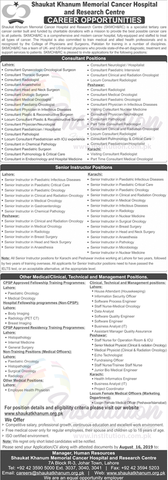 Shaukat Khanum Memorial Cancer Hospital and Research Centre Career (Jobs) Opportunities