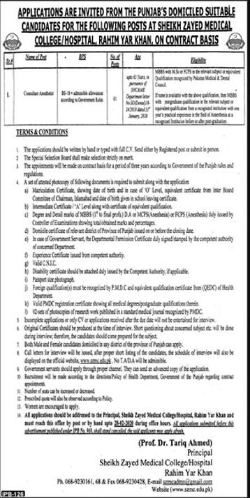 Job in Sheikh Zayed Medical College and Hospital Position Vacant