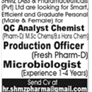Latest Jobs in SHMZ Lab and Pharmaceutical Ltd Pvt
