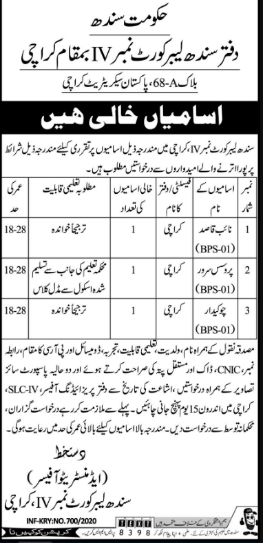 Jobs in Sindh Labor Court Karachi Positions Vacant