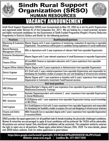 Jobs in Sindh Rural Support Organization SRUO Position Vacant