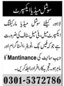 Job for Social Media Marketing Expert Male and Female Staff Required