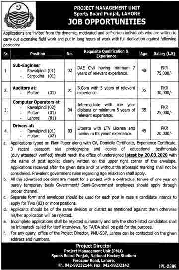 Jobs in Sport Board Punjab Project Management Unit Lahore Career Opportunity