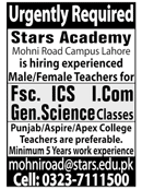 Jobs in Stars Academy Moni Rd Campus Lahore Urgently Staff Required