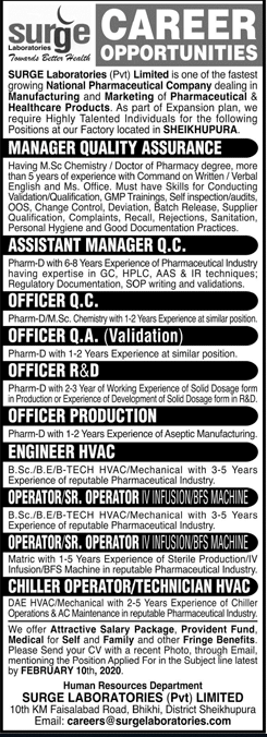 Surge Laboratories Pvt Ltd Career Opportunities Faculty Required in Sheikhupura
