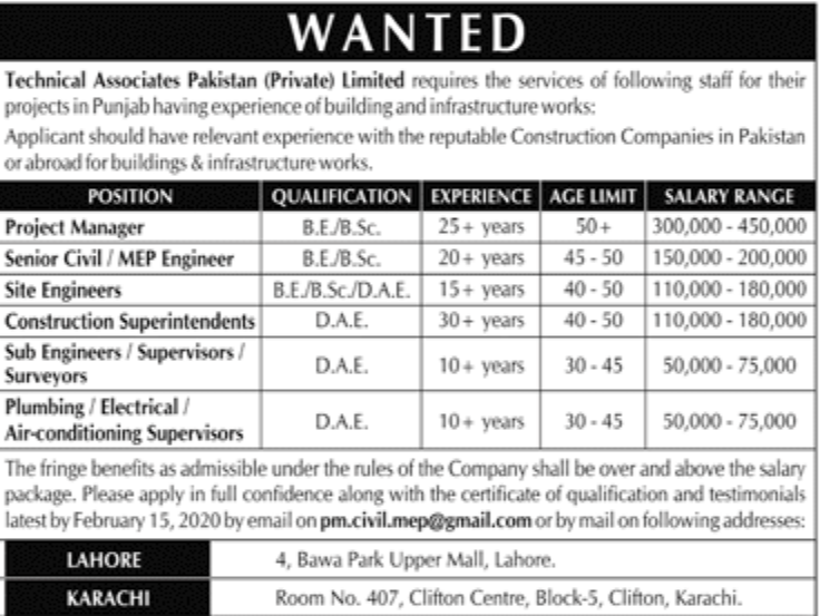 Technical Associates Pakistan PVT LTD Staff Wanted