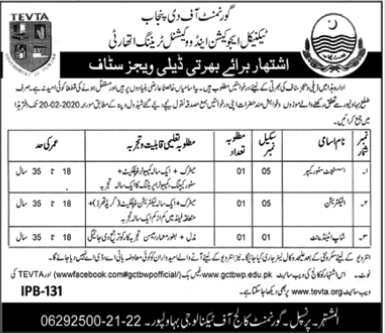 Jobs in Technical Education & Vocational Training Authority Bahawalpur Staff Vacant