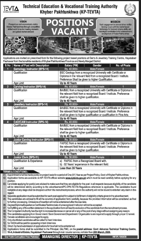 Jobs in Technical Education & Vocational Training Authority KPK Positions Vacant