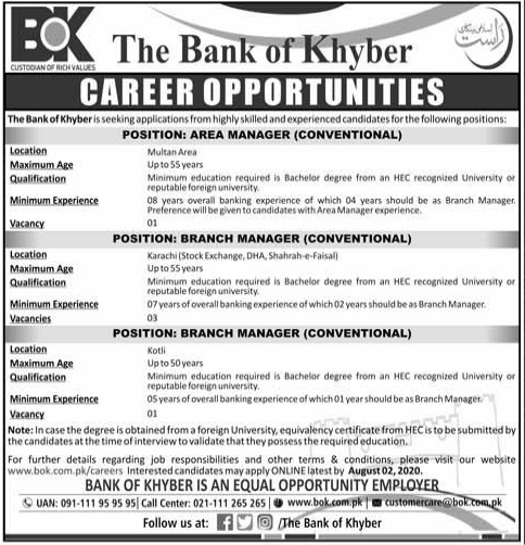 Jobs in The Bank of Khyber Career Opportunity