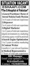Jobs in The E-Hospital in Pakistan Situation Vacant