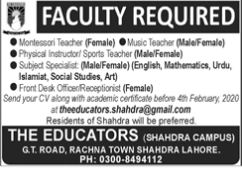 The Educators School Lahore Faculty Required in Shadara Campus Male and Female Staff