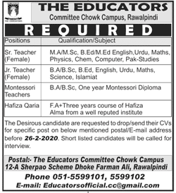 Jobs in The Educators School Committee Chowk Campus Rawalpindi Female Faculty Required