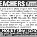 Jobs in The Mount Sanai School Islamabad 30 June 2019