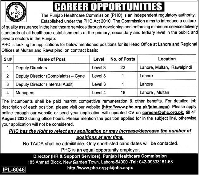 Jobs in The Punjab Health Care Comission Position Vacant