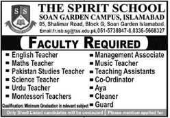 Jobs in The Spirit School Islamabad Staff Required