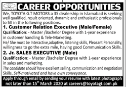 Jobs in TOYOTA Company Pvt Ltd Sales Staff Required