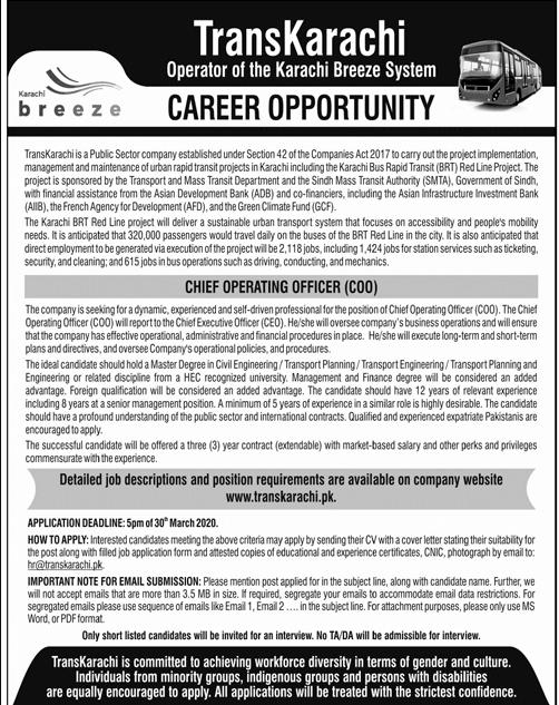 Jobs in Trans Karachi Department Position Vacant