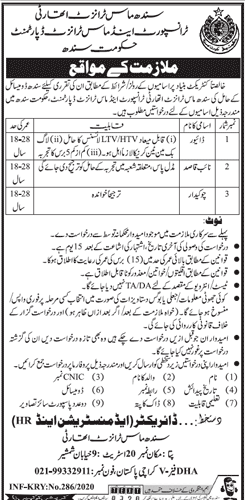 Transport and Mass Transit Department Career Opportunity