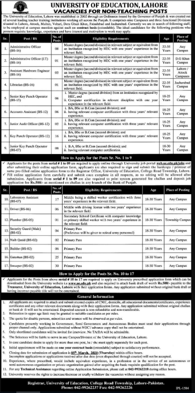 Jobs in University of Education, Lahore Positions Vacant