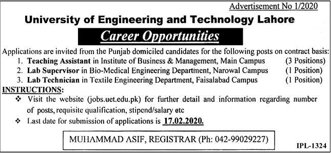 Jobs in University of Engineering and Technology Lahore Career Opportunity