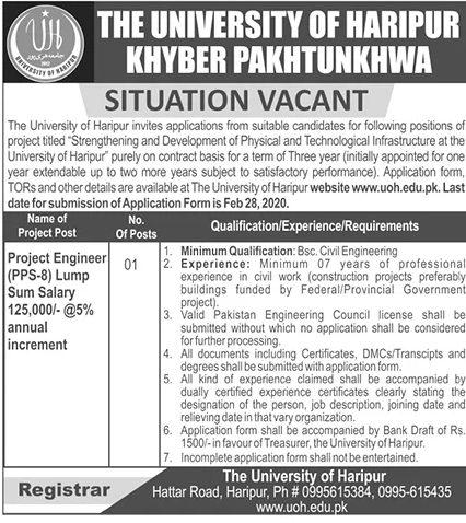 Job in University of Haripur KPK Position Vacant