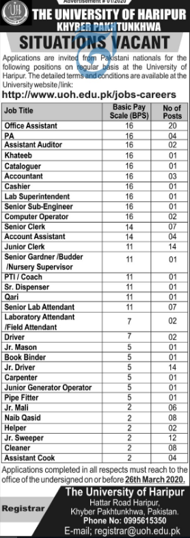 Jobs in University of Haripur KPK Positions Vacant