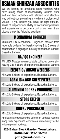 Jobs in Usman Shahzad Associate Pvt Ltd Staff Required