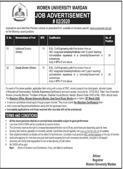 Jobs in Women University Mardan Positions Vacant