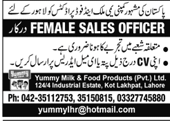 Jobs in Yummy Milk and Food Products Female Sales Staff Required